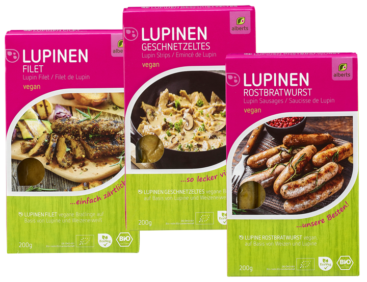 Aus blühenden Feldern werden leckere Produkte: alberts entwickelt aus regionalen Lupinen vegane Fleischalternativen. Als Träger des EcoVeg-Siegels richtet das Unternehmen sein Handeln an den UN-Klimazielen aus. Konsequent setzt das Team das Bemühen der ökologischen Landwirtschaft fort, die natürliche Lebensgrundlage von Pflanzen, Tieren und Menschen zu erhalten. Dazu fördert alberts aktiv den Anbau von Rohstoffen in seiner Region. Zum Beispiel beteiligt es sich an der Forschung zum regionalen Anbau und zur Verarbeitung von Lupinen. Denn alberts ist sich sicher: Körnerleguminosen sind die Zukunft. Sie fördern die Bodenfruchtbarkeit, trotzen dem Klimawandel und können so einen Beitrag zu einer umweltschonenden Landwirtschaft leisten. Überzeuge dich selbst vom mehrfach ausgezeichneten Geschmack der alberts-Produkte!
