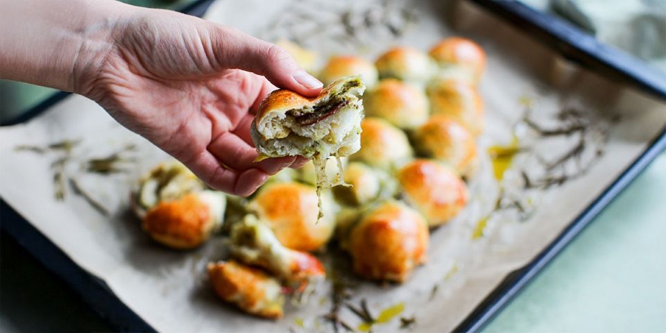backen, bis die Kugeln außen goldbraun und knusprig sind. - Herausnehmen und warm servieren.