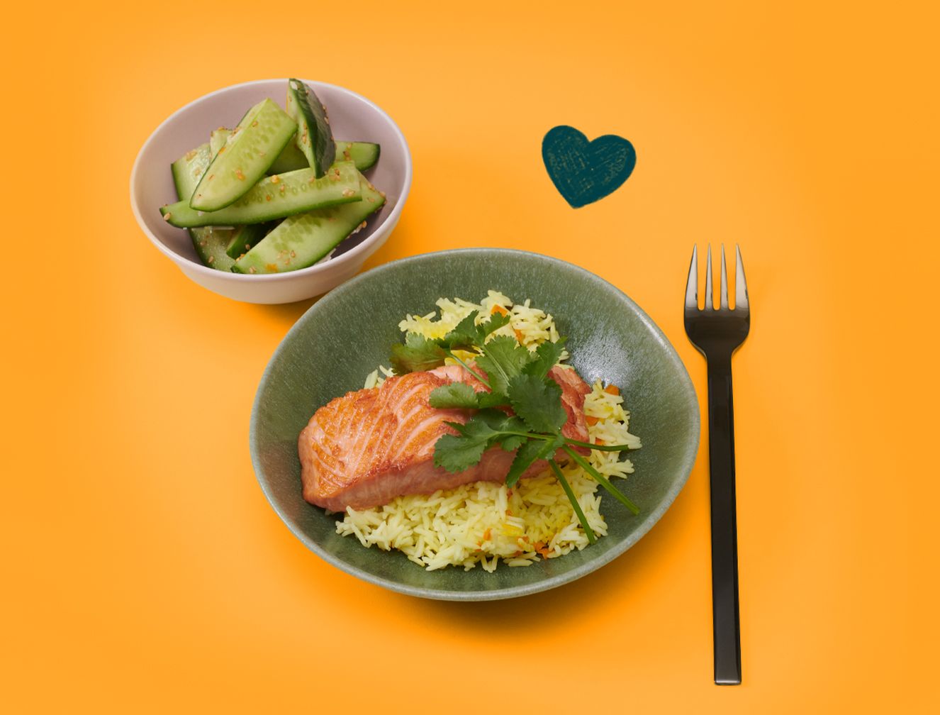- Reis kochen: Reis in einem Sieb mit kaltem Wasser waschen. Mit 100 ml Wasser, einer Prise Salz und dem Kurkuma in einen Topf geben. Kurz aufkochen, dann den Herd ausschalten und mit Deckel ca. 20 Minuten quellen lassen.