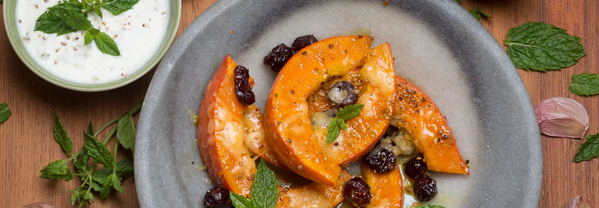 Käse reiben, zusammen mit den Cranberries über dem Kürbis verteilen und weitere 5 Min. goldbraun überbacken. Zusammen mit dem Joghurt-Minz-Dip genießen.