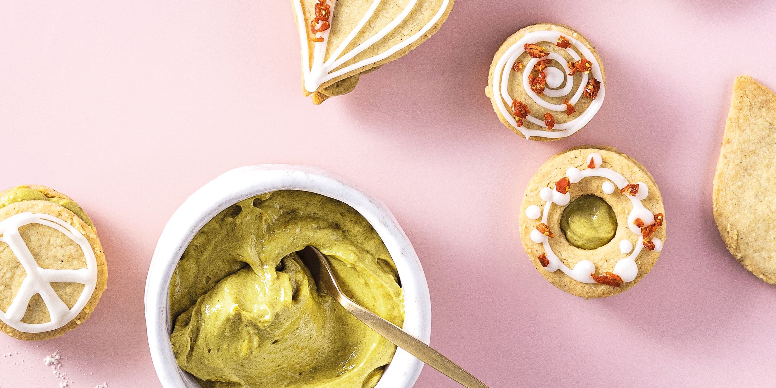 Pistazien-Mus, die vegane Butter und Zitronenabrieb unterrühren,